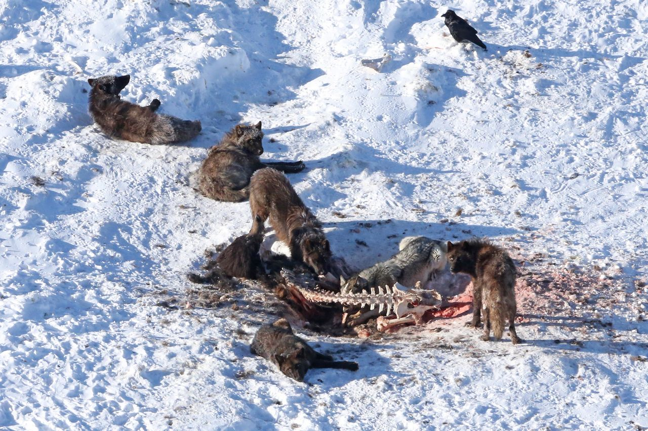 Afbeelding 9: een roedel wolven met een karkas van een grote herbivoor