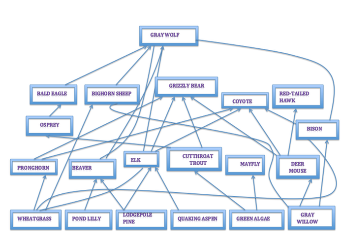 Afbeelding 15: voedselweb voorbeeld in Yellowstone [bron]